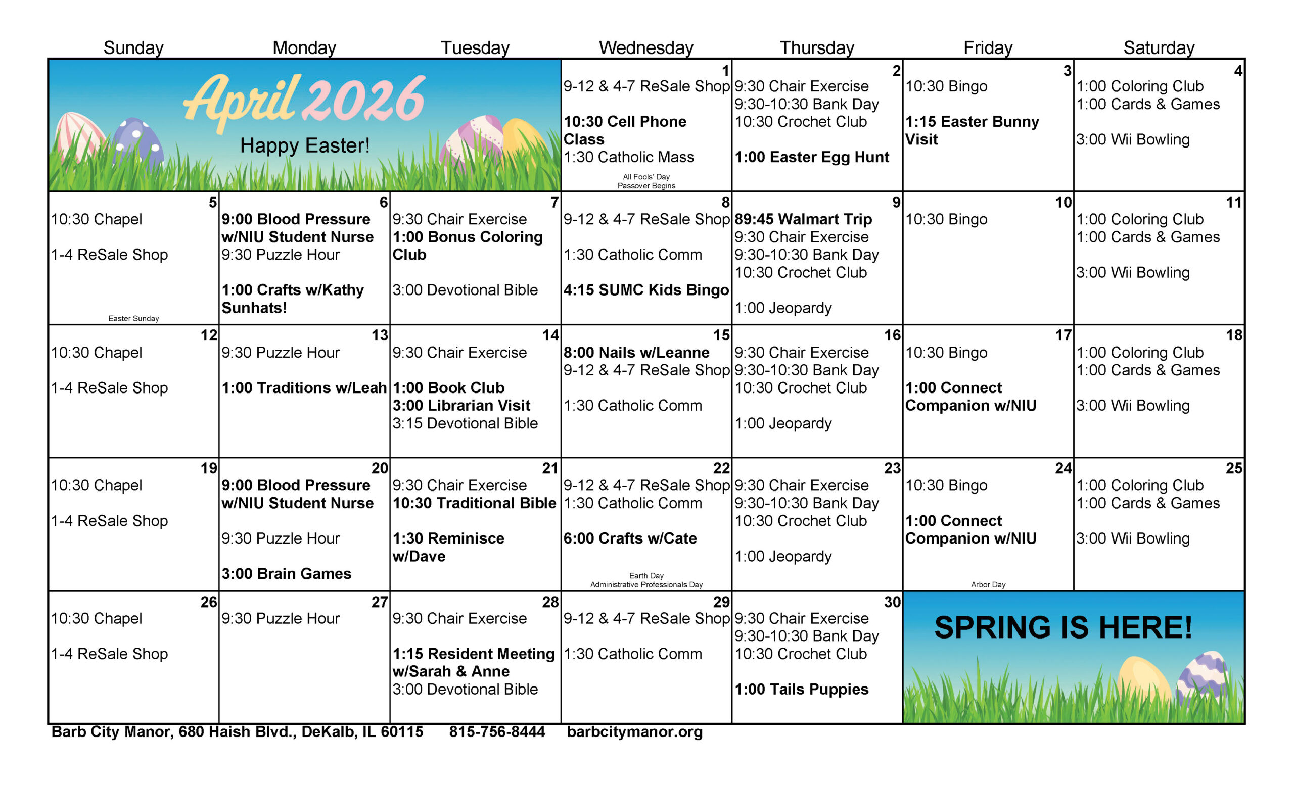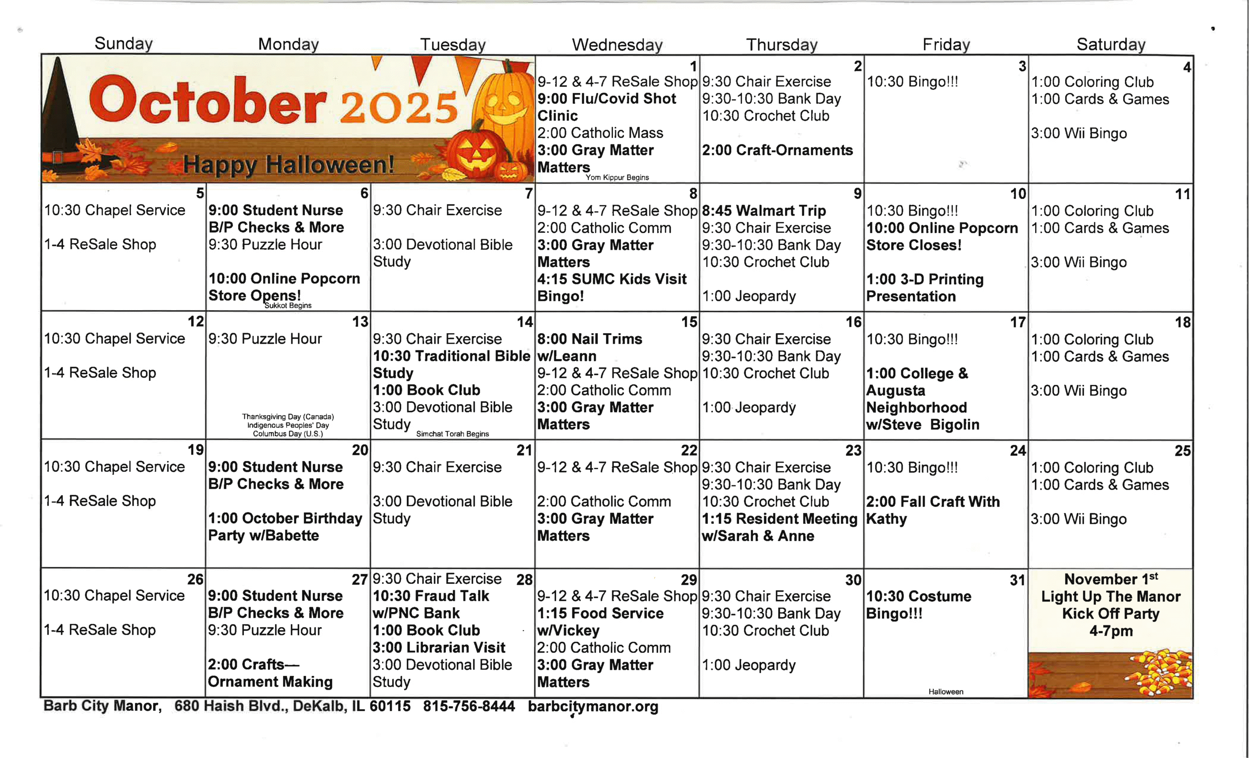 Barb City Manor is a not-for-profit retirement home serving seniors age 62 and older. Located just six blocks from downtown DeKalb, Illinois, we offer a safe, comfortable, and affordable living option in the historic Joseph F. Glidden and Jacob F. Haish hospital building. Our well-maintained grounds and warm community provide a true feeling of home.