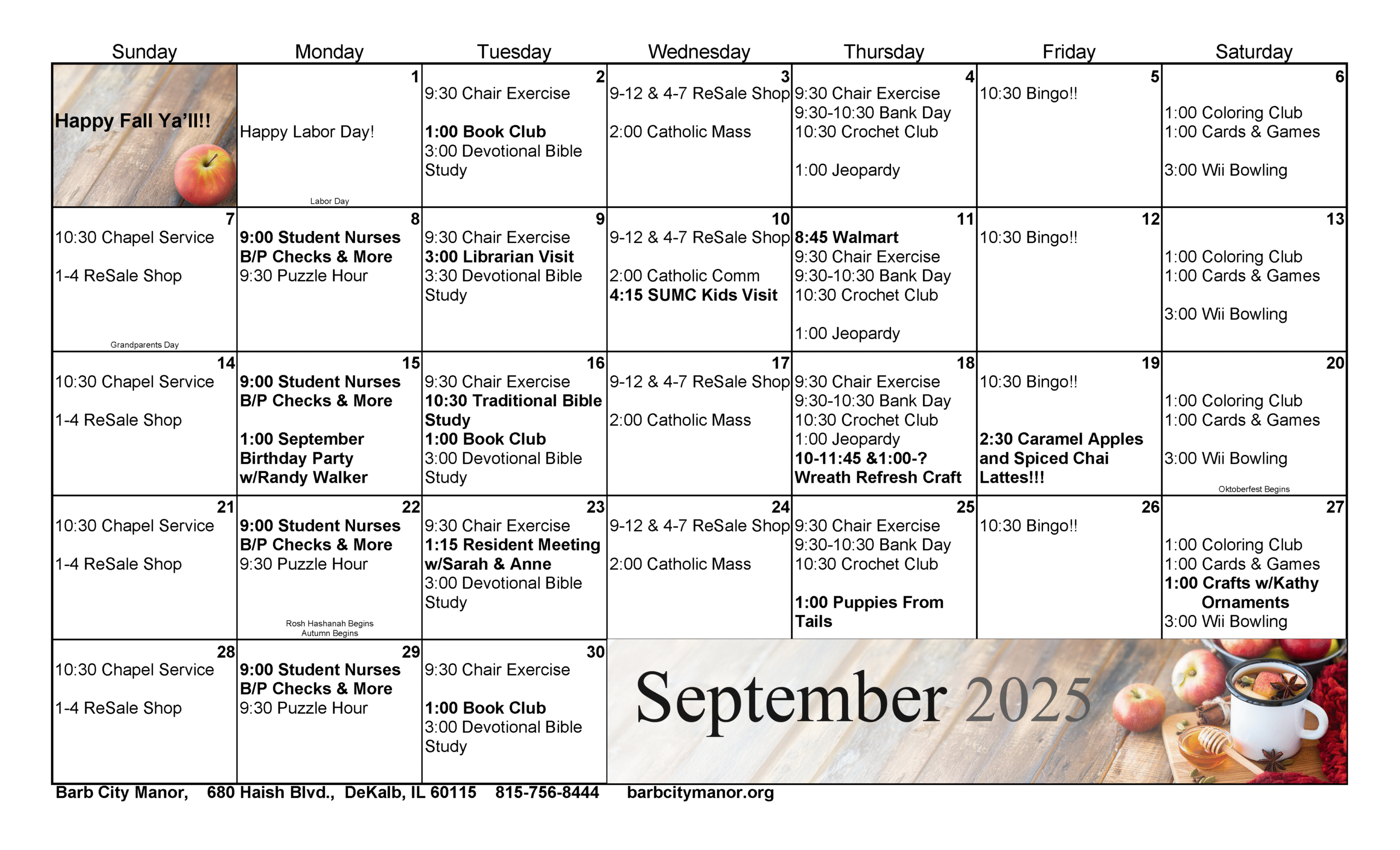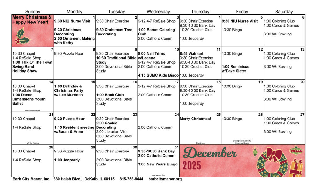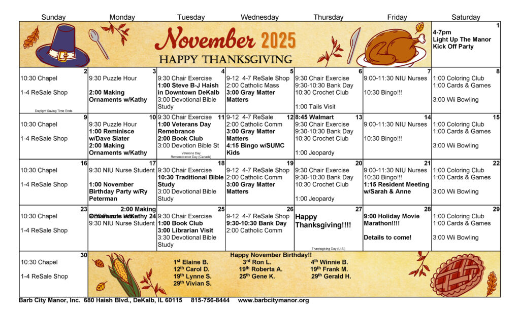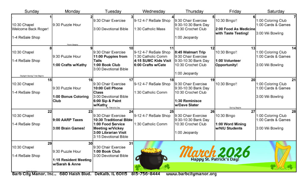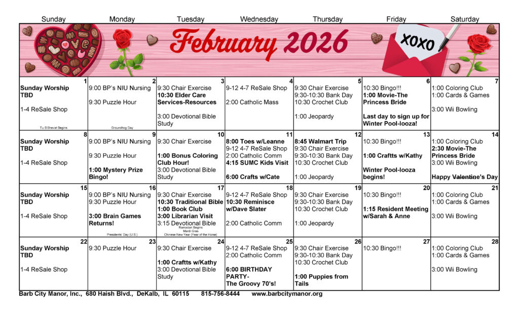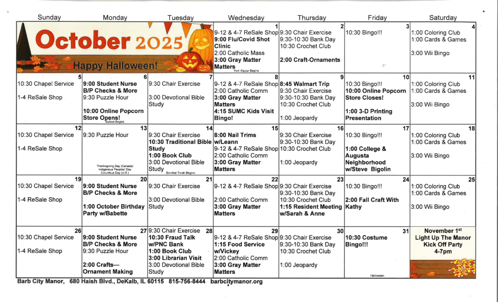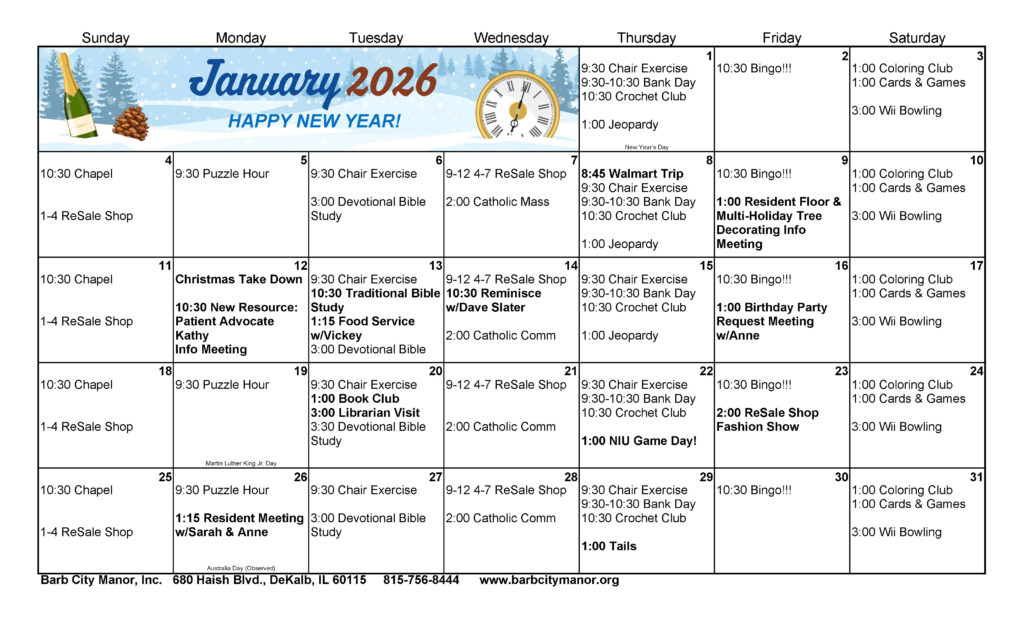Click the Image Above to ENLARGE the Calendar of Events for our active residents.